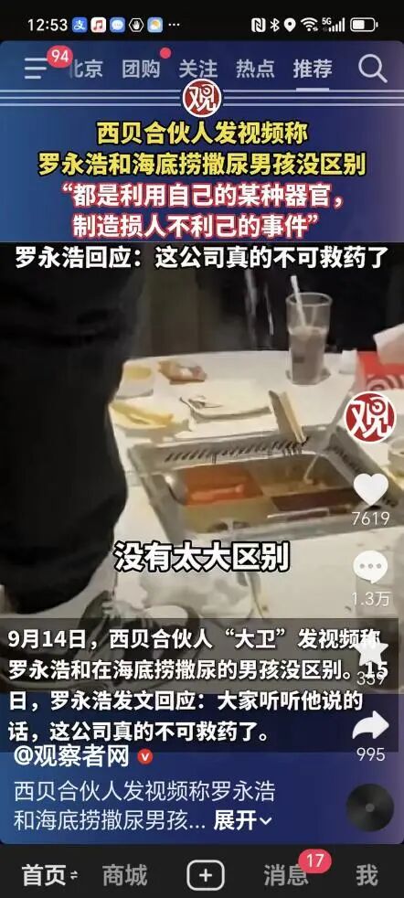 也是当日,据察看者网,双子餐饮定位结合创始人、西贝合股人樊大卫发布一条题为“论罗永浩和撒尿男孩的区别”视频,称罗永浩行为和海底捞撒尿男孩没有太大区别,素质上都是操纵本人的某种器官去制制一场损人晦气己的令人恶心的事务。樊大卫暗示,西贝利用无机西蓝花,冷冻保留是为无农药残留,却被恶意曲解。餐饮尺度化本就不易,西贝的勤奋不应被几条微博等闲否认。对此,罗永浩发文回应:大师听听他说的话,这公司线日晚,罗永浩间接正在曲播间喊话华取华:“你们托我们配合的伴侣,暗里给我道个歉,否则你就看着,我把你们汗青上的事,全数完全给你调研一遍,到时候你就了。”